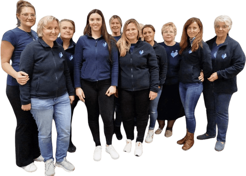 Das Team der Alltagsbetreuung-Care steht gemeinsam lächelnd nebeneinander.